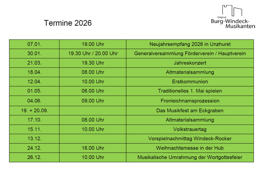 Termine der Original Burg-Windeck-Musikanten e.V.